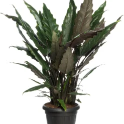 Deze Alocasia heeft lange bladeren waardoor deze goed opvalt tussen zijn familie. De mooie donkergroene bladeren en de paars/groene achterkant doet hem lijken op een Calathea. In het wild kunnen bladeren wel 70 tot 80 cm lang worden. Mocht je een mooie plaats in huis hebben, geef deze Alocasia de ruimte.