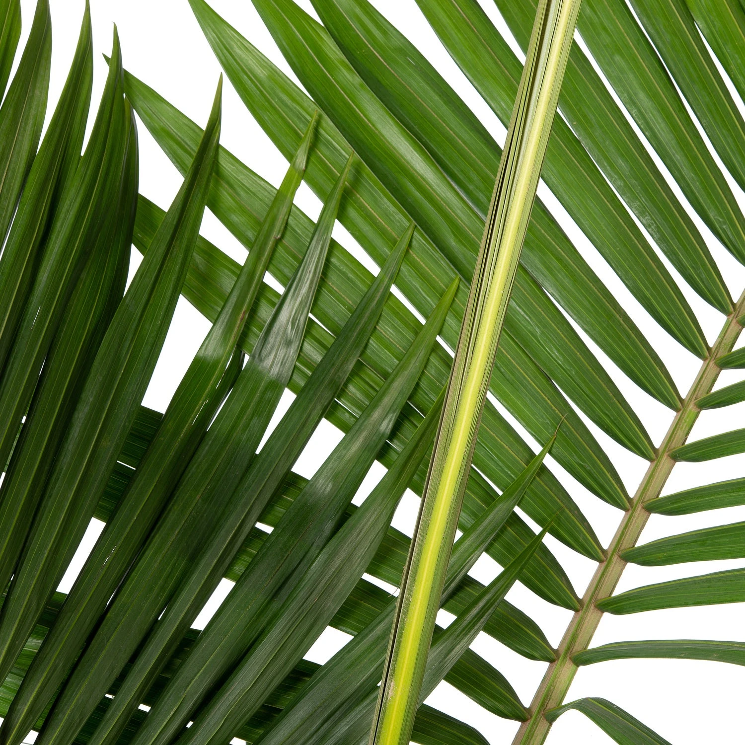 Vergeleken met andere palmensoorten, groeit deze Koningspalm vrij snel. Nieuwe bladeren verschijnen in een speervorm in het hart van de plant en ontvouwen zich daarna op een indrukwekkende manier tot een sierlijke waaier. Als er bruine bladpunten ontstaan dan kan dit een teken zijn dat de luchtvochtigheid te laat is. Dit kan worden opgelost door de plant regelmatig te benevelen met een plantenspuit. De bruine punten kunnen ook schuin afgeknipt worden.