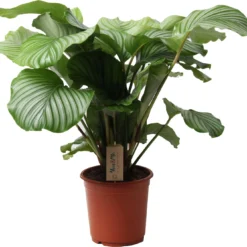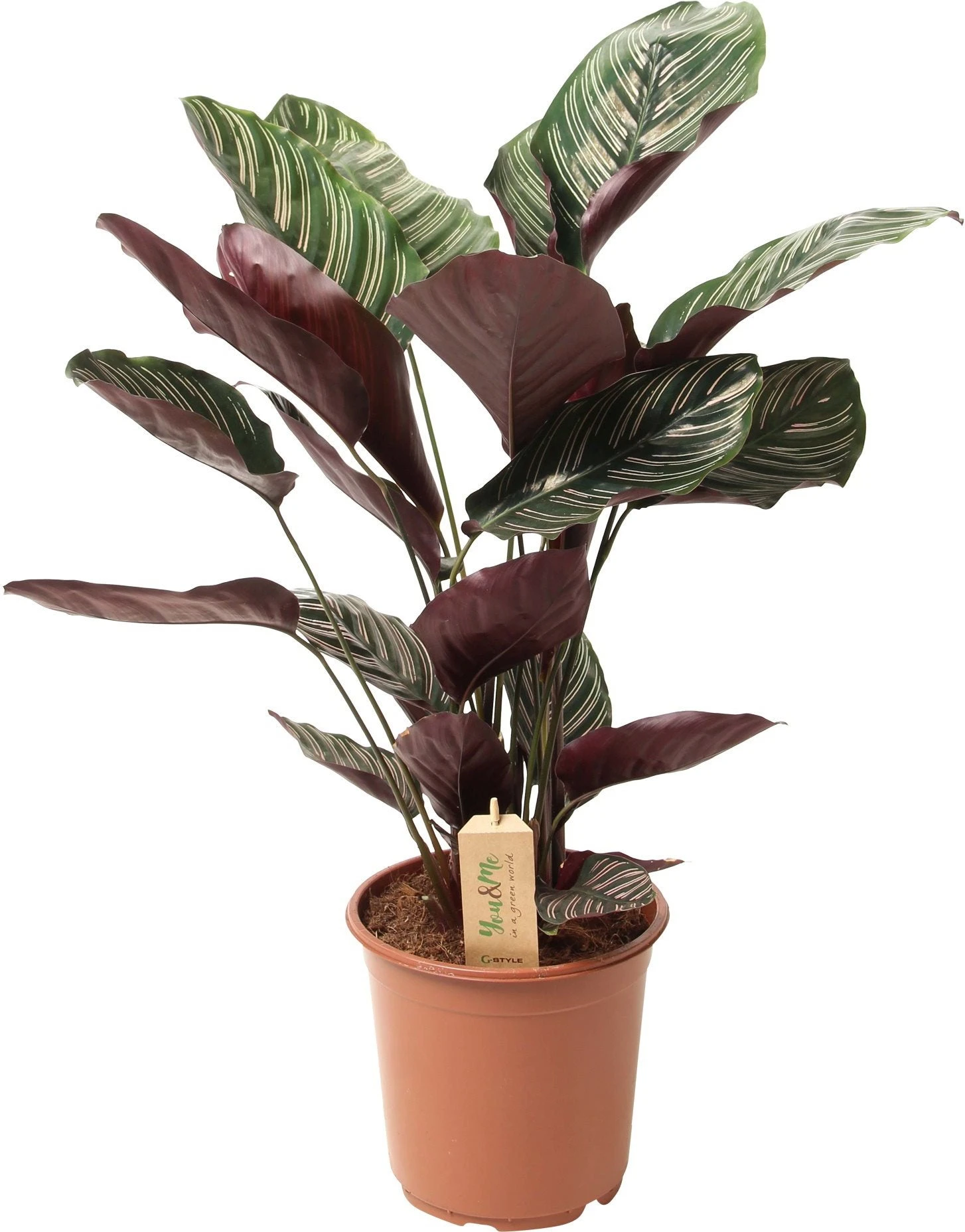 Een Calathea is niet alleen maar een mooie plant om naar te kijken, hij heeft ook nog eens een luchtzuiverende werking, waardoor het een geschikte plant is voor zowel de woonkamer als het kantoor. Zet de plant op een lichte plaats, maar niet in de directe zon. Een plek wat verder in de kamer vind hij ook prima.