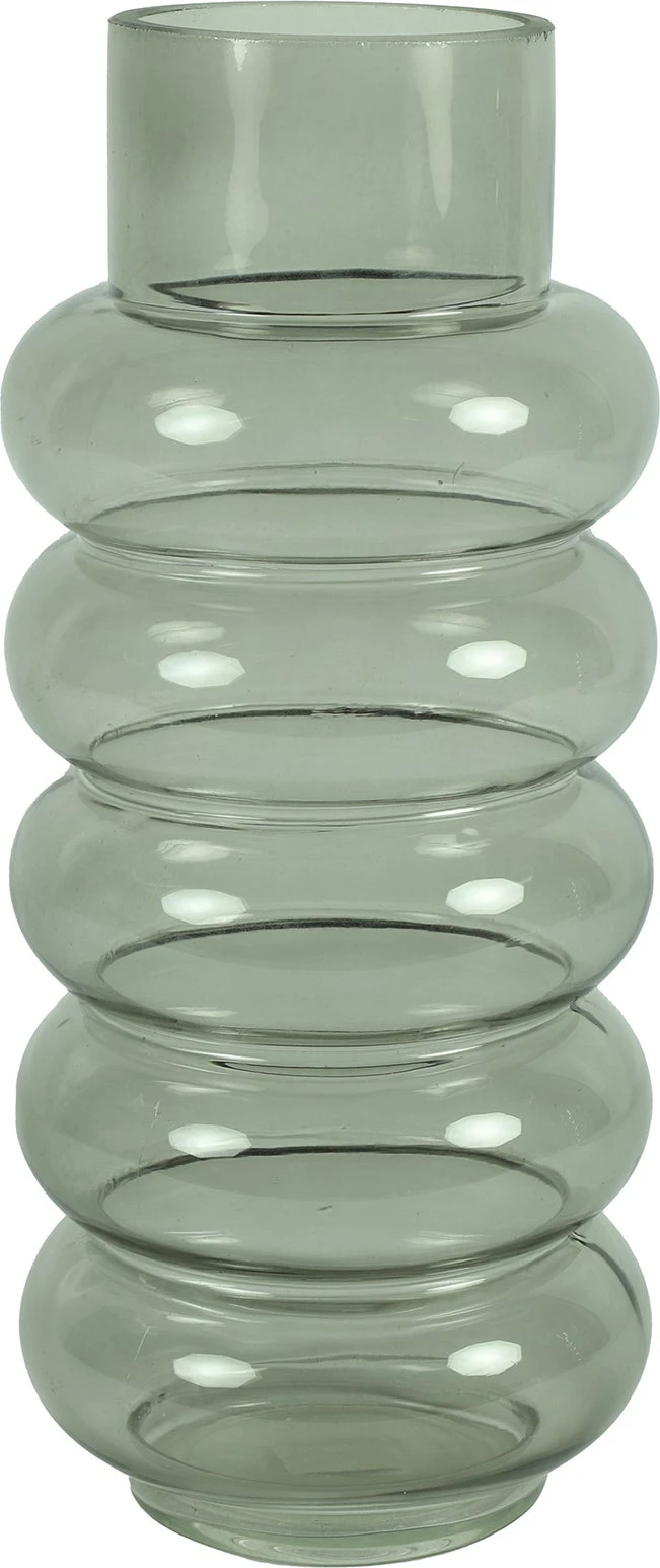 Deze vaas Nikky uit de collectie van Countryfield is een echte toevoeging aan jouw stijlvolle interieur. De vaas heeft een bijzondere vorm met 5 ringen, een opvallende hals en heeft een transparante grijze kleur. Plaats de vaas op bijvoorbeeld de salon- of eettafel en zet er een mooi bloemstuk of een aantal siertakken in. De diameter van deze vaas is 15 cm met een hoogte van 35 cm.