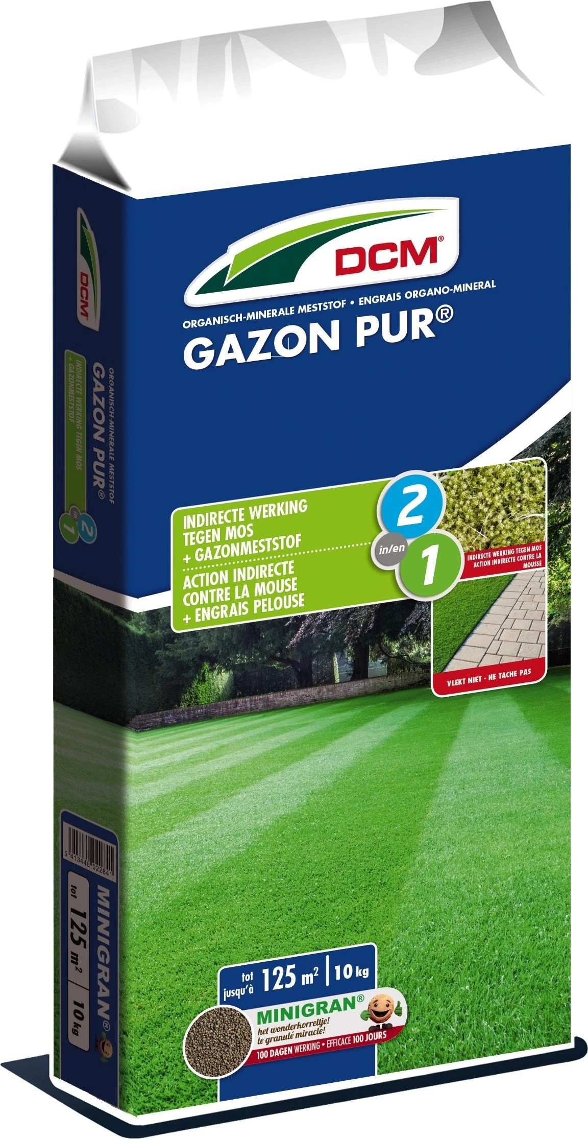 DCM gazon pur bestaat uit Minigran-korreltjes die de meststof tot wel 60% beter verdelen over jouw gazon. Het resultaat is een gazon dat regelmatig groeit en gelijkmatig groen wordt. Het is aan te raden DCM gazonstart 2 keer per jaar toe te passen: één keer in de periode maart tot en met juni en één keer in de periode juli tot en met oktober. Gebruik daarbij 0,6 – 1,2 kg per 10 m2 gazon.