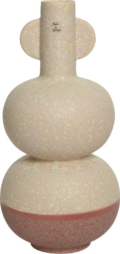 Met de juiste vaas laat je, jouw bloemen extra goed uitkomen! Deze vaas van Decoris heeft ronde vormen met een rechte hals waar 2 oren aan zitten. Omdat de hals smal is kun je er geen volledig boeket in kwijt maar wel kleine dingen zoals bloesem, droogtakken of losse bloemen zijn ideaal! De vaas is gemaakt van keramiek en heeft 2 verschillende roze kleuren.