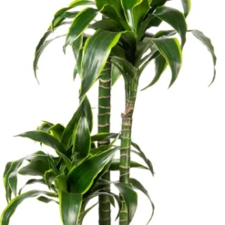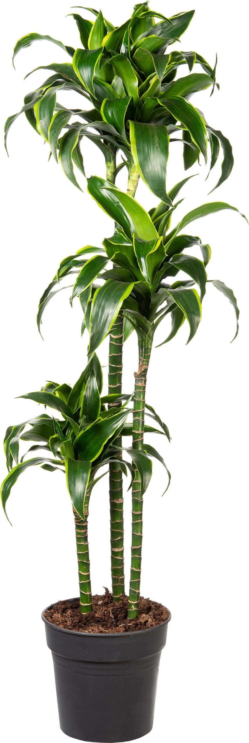 De Dracaena’s zijn populaire kamer- en kantoorplanten die makkelijk in het onderhoud zijn. Je kunt jarenlang plezier hebben van deze leuke bladplant, die ook nog een decoratieve stam heeft. De Dracaena fragrans heeft zijn naam’ fragrans’ vanwege zijn geurende bloemen, die echter zelden binnenshuis ontstaan. De Dracaena staat graag op een standplaats met indirect licht, maar verdraagt ook wat meer schaduw. De Draecena fragrans ‘Dorado’ heeft een lichtgroene rand aan het groene, langwerpige blad