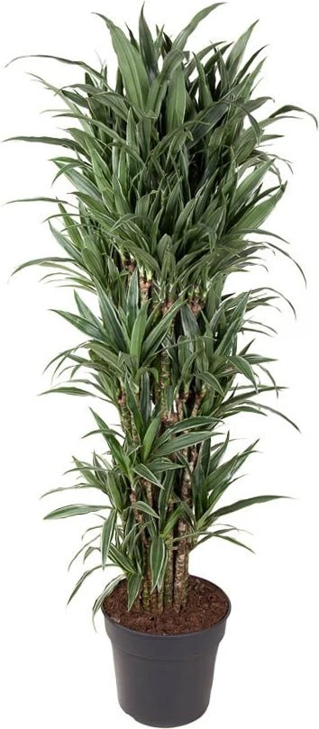 De Dracaena’s zijn populaire kamer- en kantoorplanten die makkelijk in het onderhoud zijn. Je kunt jarenlang plezier hebben van deze leuke bladplant, die ook nog een decoratieve stam heeft. De Dracaena fragrans heeft zijn naam’ fragrans’ vanwege zijn geurende bloemen, die echter zelden binnenshuis ontstaan. De Dracaena staat graag op een standplaats met indirect licht, maar verdraagt ook wat meer schaduw. De Warneckei heeft een witbont langwerpige blad