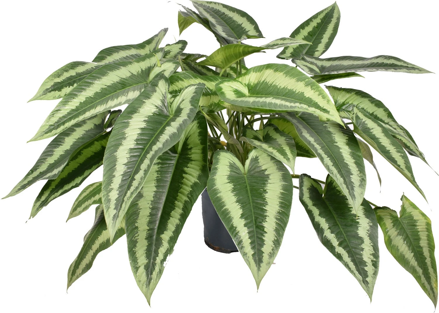 De tongplant heeft alocasia achtige bladeren en heeft ook wel de eigenschappen van deze naaste familie. De plant heeft licht bont blad in zilver-wit en fris groen.