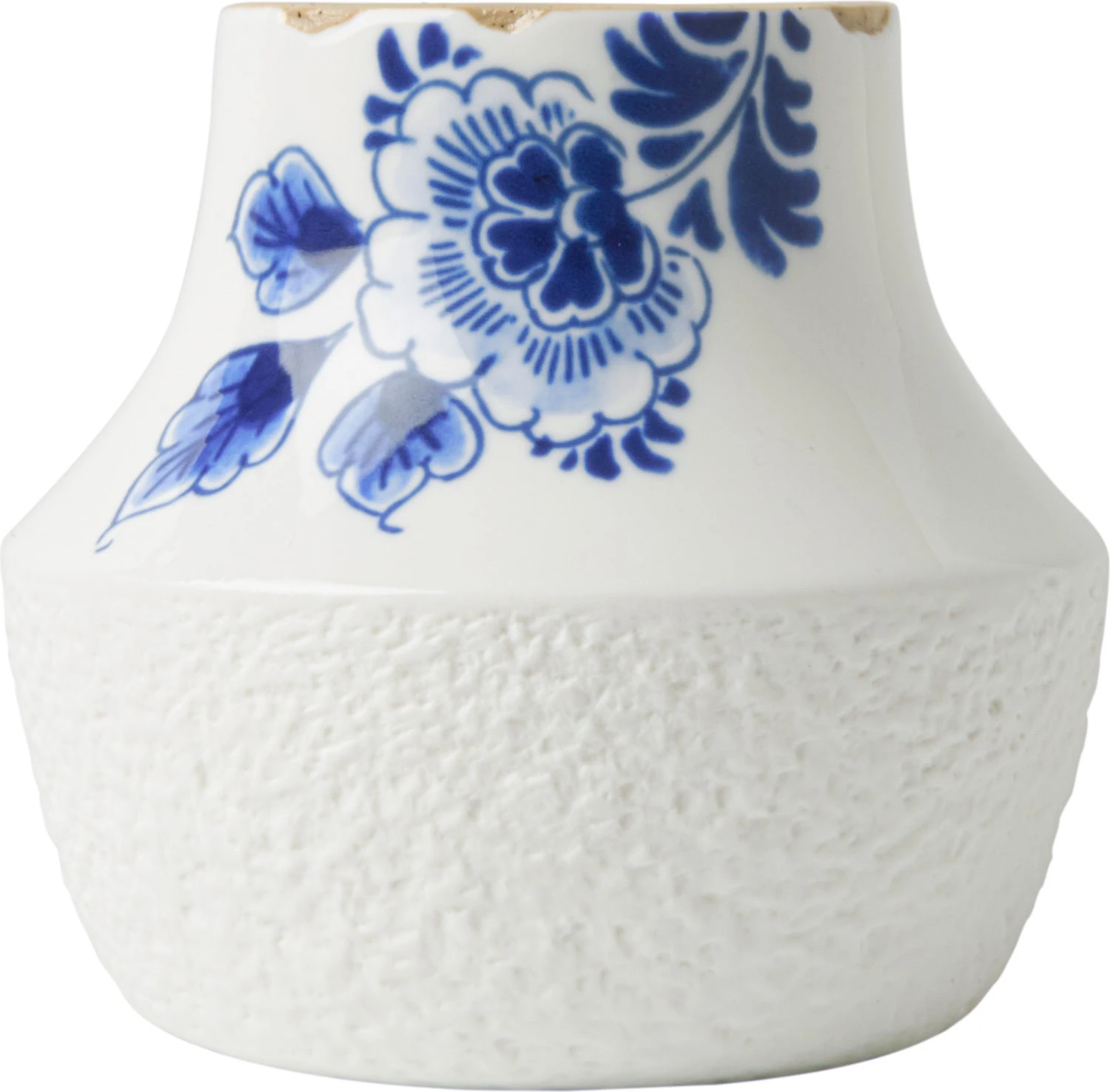 Breng gezelligheid in je huis met dit bijzondere Blauw Bloesem vaasje. Een opvallend rond, laag vaasje met Delfts blauwe bloesem decoratie. De inspiratie voor de vazen haalt ontwerpster Debbie Wijskamp uit haar liefde voor schoonheid in imperfectie. Door contrasterende structuren te gebruiken, vergroot de schoonheid van het geheel. Net als een ruwe steen die schitterend edelgesteente meedraagt aan de binnenkant.