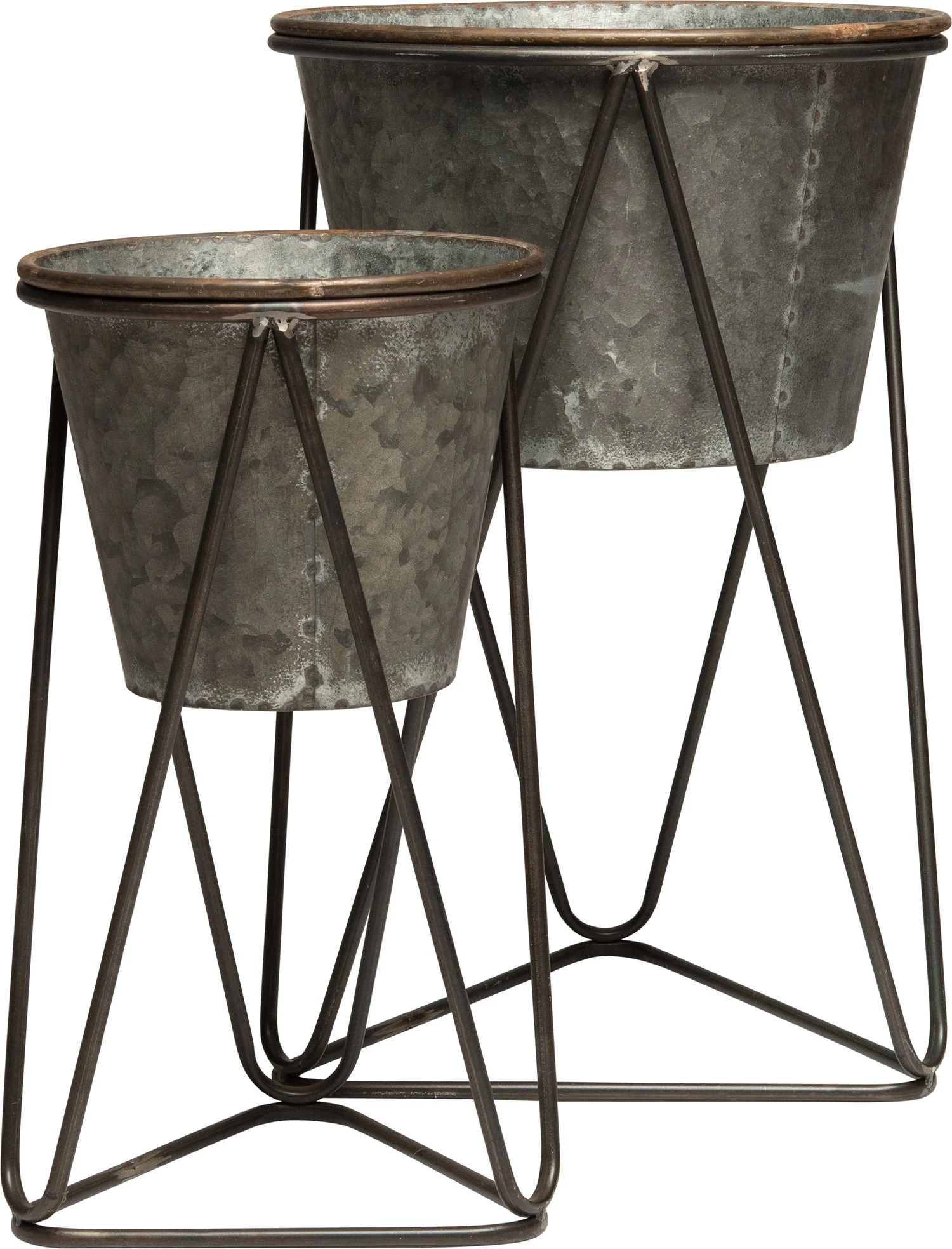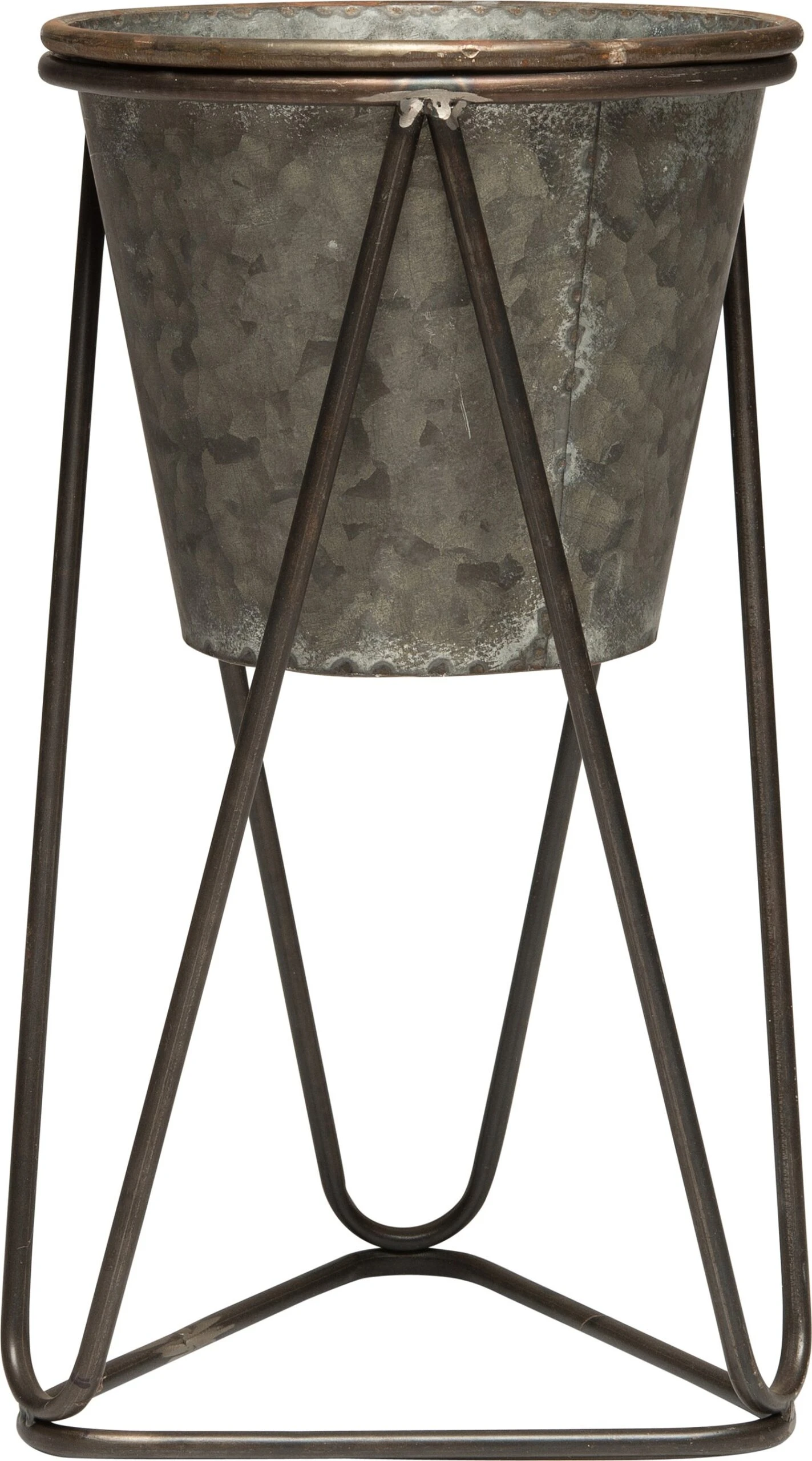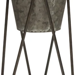 Als je de tuin of je balkon met extra planten wilt opfleuren dan is deze bloempot op voet ideaal. De bloempot hangt in een metalen frame en staat daardoor verhoogd. De onderkant van het frame heeft de vorm van een driehoek, waardoor de plantenstandaard extra stevig staat. Deze grijze bloempot op voet is gemaakt van metaal en heeft een diameter van 22 centimeter en een hoogte van 41 centimeter. De bloempot is ook in een andere maat beschikbaar en het staat leuk als set.