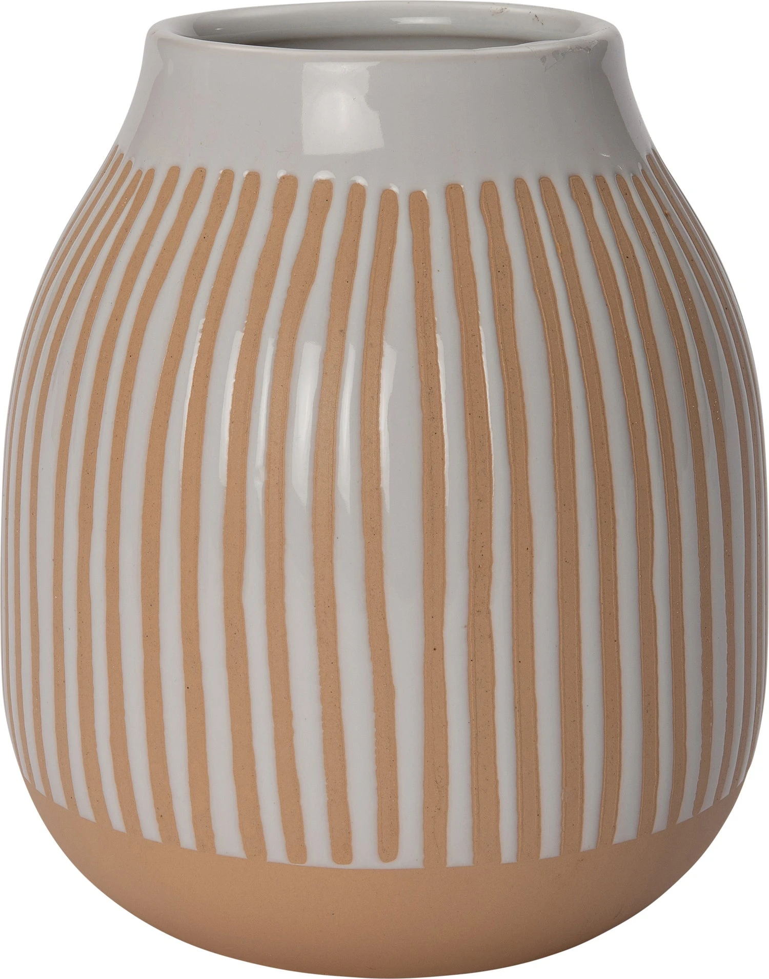 Strepen zijn tijdloos en passen vrijwel in ieder interieur, welke woonstijl je ook hebt. Je kunt strepen in je interieur brengen door middel van streep behang, een gestreept dekbedovertrek of strepen kussens, maar er is nog meer mogelijk. Met de vaas Oxo heb je letterlijk een streepje voor! Het strakke, maar speelse patroon komt terug over de gehele vaas. Het maakt dus niet uit hoe je de vaas neerzet overal kun je de strepen bewonderen. De serie Oxo is te verkrijgen in diverse maten. De doorsnede van deze vaas is 15,5 cm en de hoogte is 18 cm. De vazen worden met de handgemaakt, hierdoor zijn ze allemaal uniek en kunnen dus iets afwijken qua kleur en afmeting.