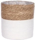 Deze Rachel mand uit de collectie van Mica Decorations is functioneel en geeft tegelijkertijd een natuurlijke touch aan je interieur. De mand is namelijk gemaakt van zeegras en erg milieuvriendelijk. Deze natuurlijke basis is in het bovenste deel van de mand duidelijk terug te zien, terwijl de onderlaag een frisse, witte kleur heeft. Door de plastic liner is de mand erg geschikt voor een leuke plant, maar je kan er ook wat dingen in opbergen. De Rachel manden zijn verkrijgbaar in verschillende kleuren en maten. Deze mand is witte en heeft een hoogte van 21 cm met een doorsnede van 21 cm.