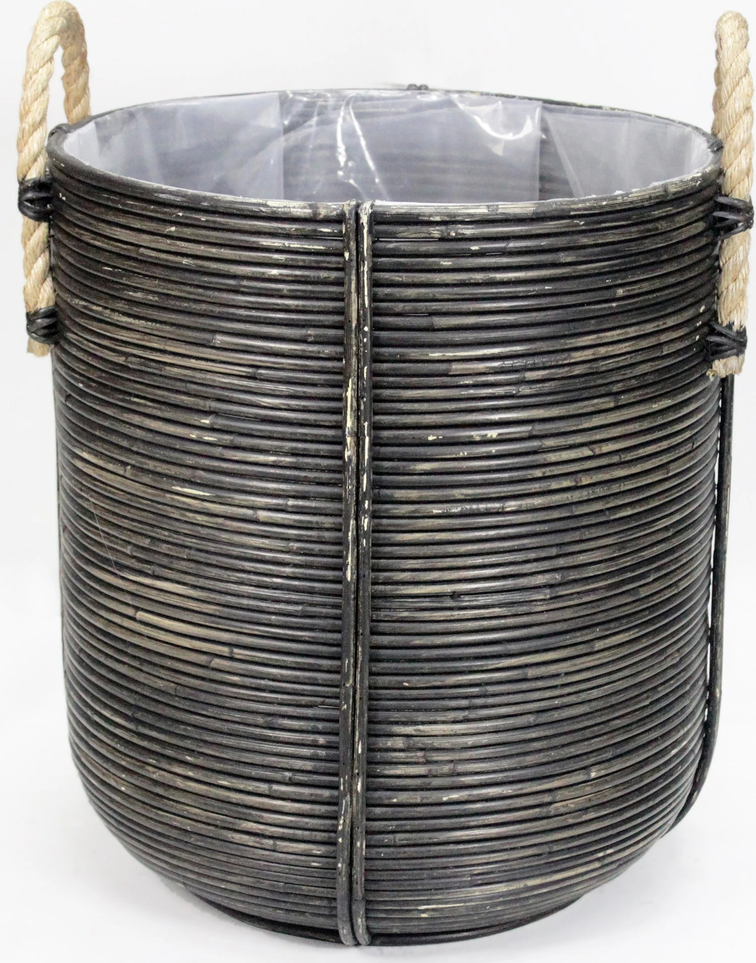 Deze stijlvolle opbergmand uit de collectie van Van der Leeden is gemaakt van riet en heeft een prachtige zwarte kleur. Hierdoor past de opbergmand vrijwel in ieder interieur. De opbergmand is geschikt om een kamerplant in te zetten, maar dan moet je wel zorgen dat er eerst een waterdichte zak in de opbergmand wordt gedaan. De opbergmand kan tevens gebruikt worden om allerlei spullen in op te bergen. De diameter van de opbergmand is 45 cm met een hoogte van 50 cm.